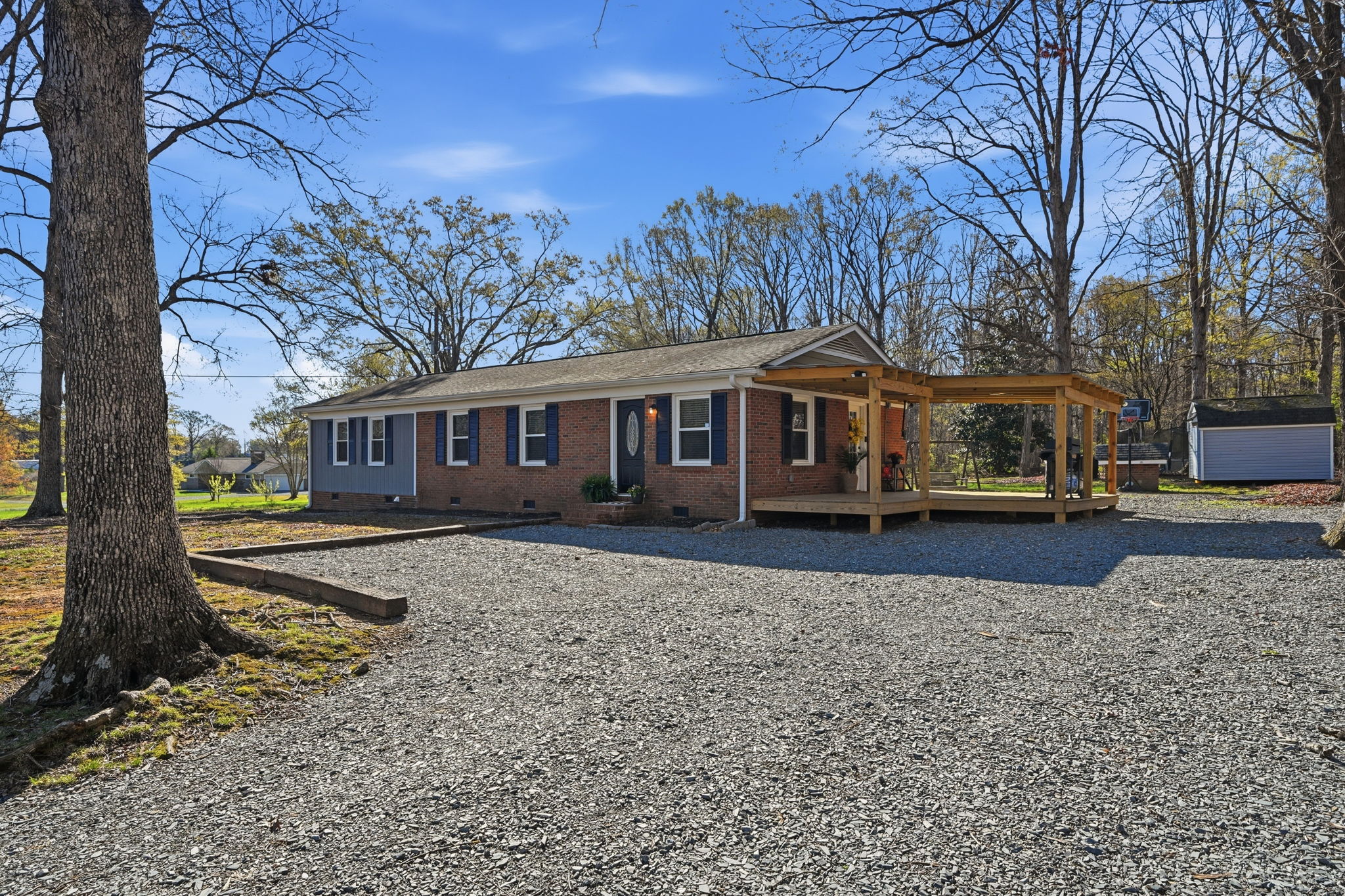 Looking for a ranch home, over an acre to make your own in a great area with no HOA? Come take a look. Newly built covered side porch/deck perfect for entertaining and extended living space- large enough for soft style furniture and table and chairs. Add a TV for outside movie night or morning coffee just enjoying sweet nature! This home had a complete remodel in 2014 but was just painted outside and inside on ceiling, walls, doors and trim. Brand new Carpet in all bedrooms and closets. HVAC replaced in 2025. Kitchen has plenty of cabinets with stainless appliances granite counter tops. Pass through window to dining/family room. Extra room that can be living room or nice space for playroom/office as well. 2 good sized secondary bedrooms with ample closet space and shared full bath. Hall leads to Primary Suite with Extra large bedroom with private French doors leading to deck space over looking neighboring scenic pond (just pressure washed and stained) , primary bath with dual vanities and walk in closet. Beautiful original hardwood flooring in some of the home! Exterior features a nice large yard with storage building and also storage connected to home on back with water heater. Designed and graveled space in front of home for parking two vehicles plus driveway. So much potential to make this your own space. Perfect for new home owners or ones looking to downsize to a ranch style home. Conveniently located and near all Monroe has to offer, Waxhaw and Wesley Chapel! Fresh, clean and ready to move in!
